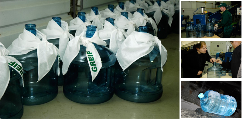 Такі потреби цілком задовольняють полікарбонатні бутлі виробництва ТОВ «Грайф Україна». Вони повністю відповідають вимогам сьогодення: виробляються з полікарбонату – екологічно безпечного матеріалу, що чудово зберігає смак питної води та її корисні властивості. Також великою перевагою цього матеріалу є висока міцність і мала вага бутля (аналогічна скляна тара є в 4 рази важчою). Це значно спрощує процес транспортування розлитої води від заводу-виробника до кінцевого споживача. Втім, важливо пам’ятати про те, що з полікарбонатними бутлями слід поводитися так само обережно, як і зі скляною тарою – їх вкрай не рекомендується кидати під час завантаження, адже після удару виникають ділянки внутрішньої напруги. При повторних ударах у цих місцях можуть виникнути мікротріщини, що унеможливить подальше використання бутля. Компанія «Грайф Україна» виробляє бутлі різної ємності, з ручкою та без ручки, є можливість виготовити бутиль за індивідуальним замовленням.